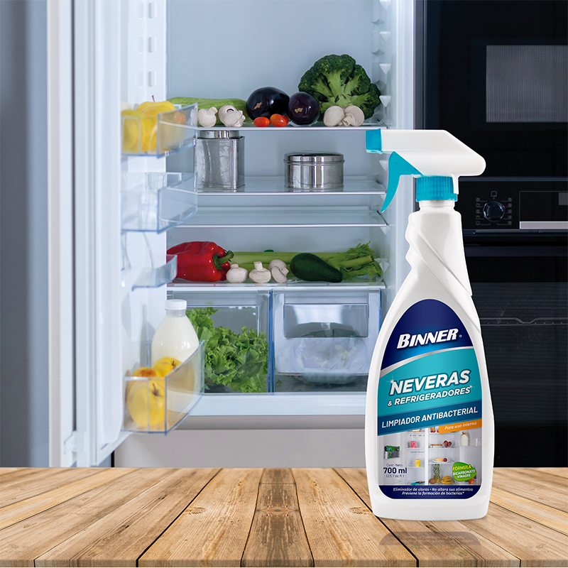 LIMPIADOR NEVERAS Y REFRIGERADORES con su poderosa fórmula comprobada que contiene BICARBONATO Y VINAGRE, actúa previniendo la formación de hongos causantes de malos olores, a la vez que limpia y desinfecta el interior de su nevera o refrigerador sin dejar residuos que afecten sus alimentos.