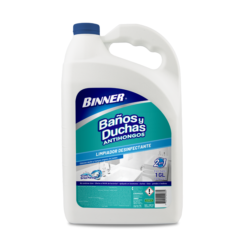 BINNER® BAÑOS Y DUCHAS LIMPIADOR DESINFECTANTE, está especialmente diseñado para eliminar fácil y rápidamente grasa, sarro, restos de jabón, manchas y bacterias, logrando reducir los alérgenos que se producen por pelos, moquillo, baba, plumas, descamación normal de piel, residuos de comida, etc., generados por perros, gatos y demás mascotas domésticas. Por su fórmula Antibacterial protege su salud y la de su familia, dejando a su vez un agradable aroma.