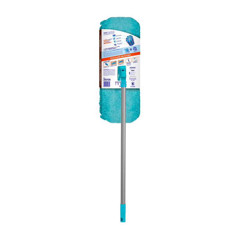 Mopa de microfibra fácil de usar con mango expandible y tamaño perfecto para limpiar tamaños amplios. Seca, limpia y brilla sin rayar, no suelta pelusa.